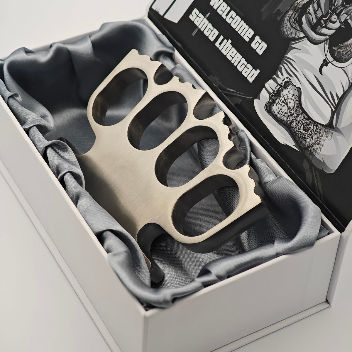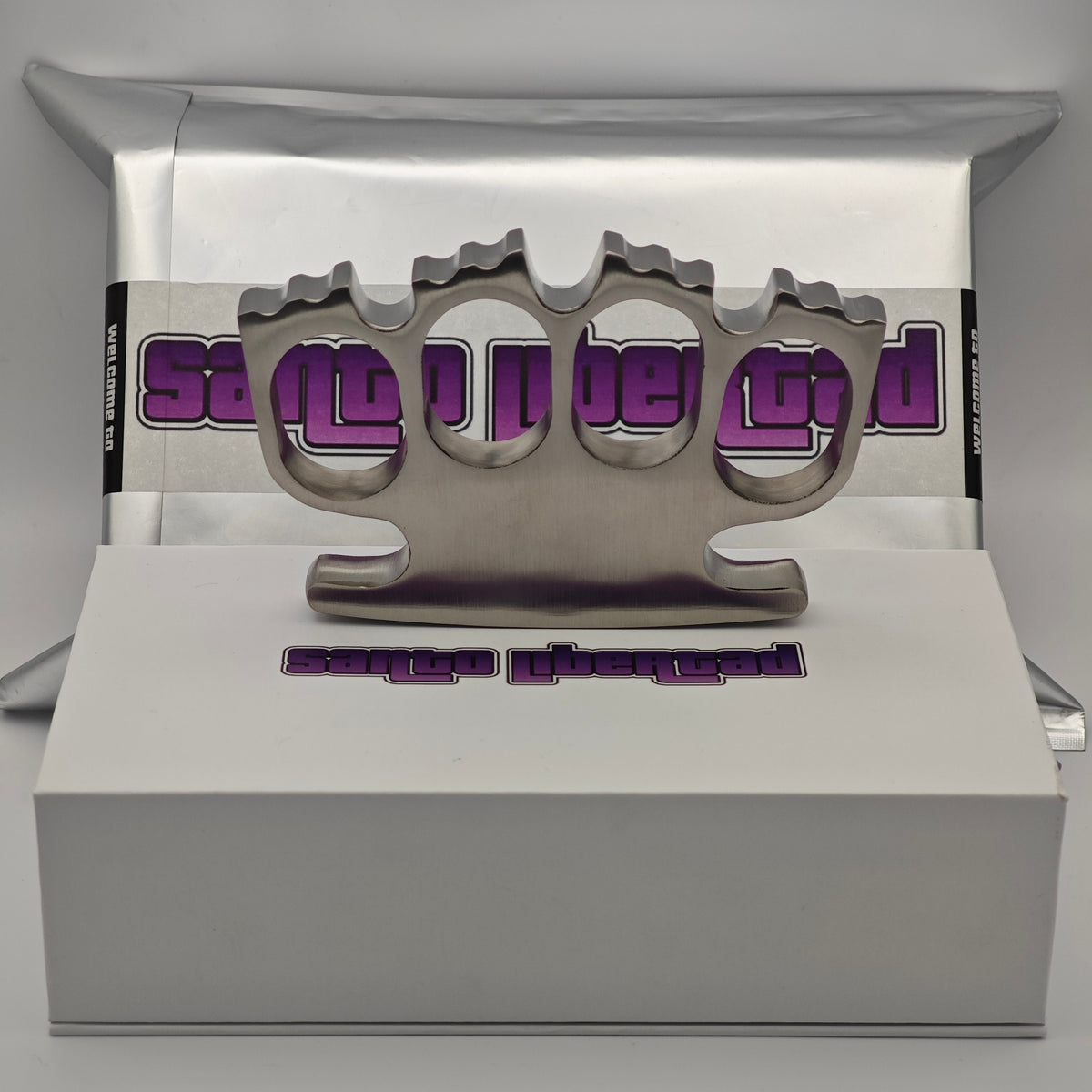 Découvrez le Santo King, le poing américain emblématique de Santo Libertad, conçu pour ceux qui défendent leur territoire avec ferveur et protègent leur familia à tout prix.